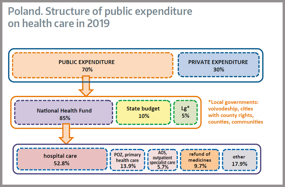 In terms of GDP, Poland is listed as one of the four European countries that spend the least on health care at European level.