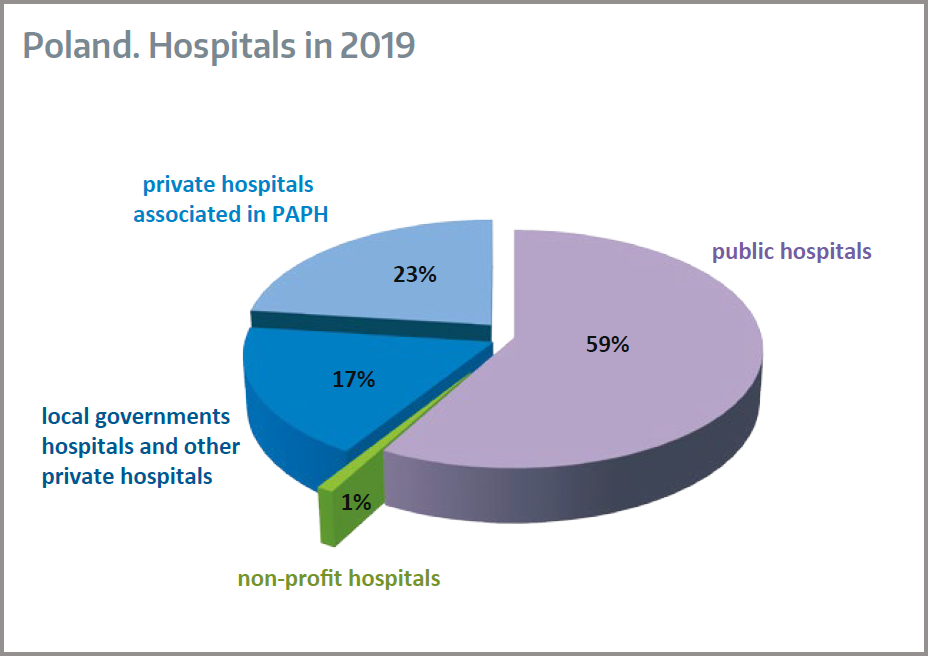 The structure of the hospital sector has remained the same for many years, with a clear 60% share of public hospitals. The hospital network introduced in 2017 by the Ministry of Health, to which 594 hospitals were qualified, of which only 13% were non-public institutions, did not change this situation. Contrary to assumptions, the reform focused on public hospitals did not increase the level